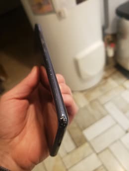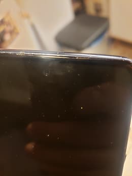 Des impacts sur tout le contour du téléphone, la touche volume du bas à moitié cassé, un jour entre l'écran et l'armature du téléphone (En haut). Je veux bien que ce soit du reconditionné mais j'ai quand même payé 144,99€.