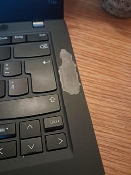 L'ordinateur portable fonctionne sans problème et n'a apparemment pas été beaucoup utilisé par le propriétaire précédent. J'ai toutefois été surpris de constater que sur le boîtier, à côté du clavier, à un endroit d'environ 2x5 cm, il manque le revêtement sur le châssis en magnésium. Il semble qu'un autocollant d'entreprise y ait été apposé et qu'il ait été enlevé sans grande précaution. Le dommage est purement cosmétique, mais j'ai déjà acheté des appareils reconditionnés en meilleur état et en "bon état".