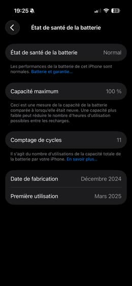 Le téléphone il est neuf, je suis choqué !! j’avais peur au début, mais je suis tellement content de mon achat !! je l’ai pris en parfait état, avec une batterie standard mais j’ai reçu avec une batterie à 100 % avec seulement 10 cycle de recharge neuf quoi !! Et j’ai même la garantie Apple care encore !