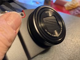 Bon état global mais petits impacts un peu inquiétants sur la garniture autour de l’objectif. Semble toutefois fonctionner correctement. Un peu de doute sur l’auto-focus mais dans des situations particulières.